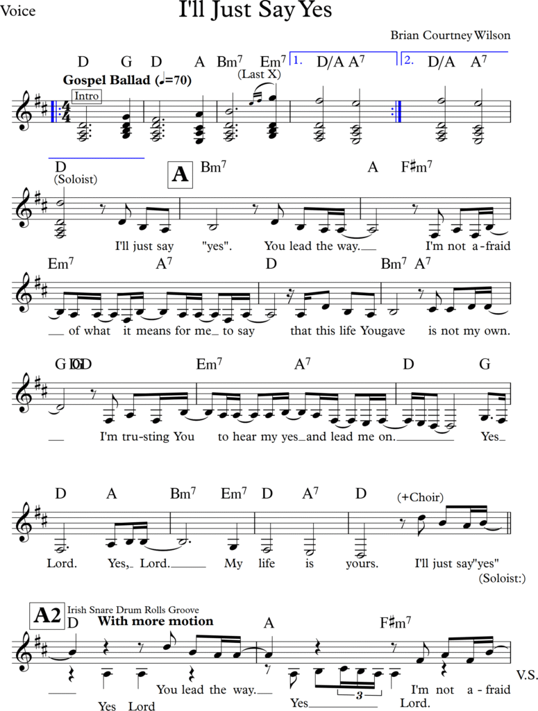 I’ll just say yes. You lead the way. I’m not afraid of what it means for me to say. That this life You gave is not my own I’m trusting You to hear my yes and lead me on.