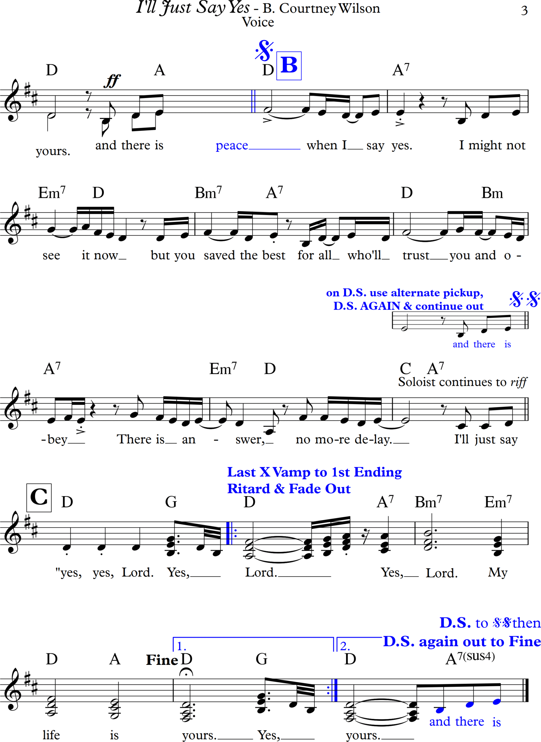 And there is peace when I say yes. I might not see it now but You save the best for all who trust You and obey. There is an answer no more delay. I’ll just say Yes, yes Lord; yes Lord my life is Yours x3